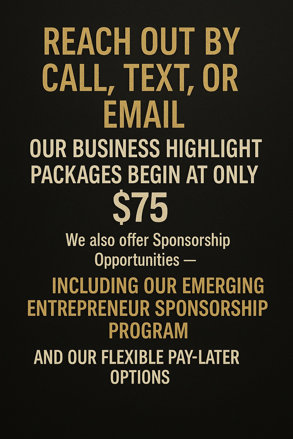 Reach out by call, text, or email. Our Business Highlight packages begin at only $75.